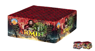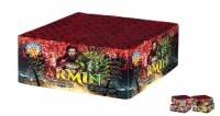 Peonia Oro lampeggiante con centro Blu, Verde lampeggiante con centro Rosso, Argento lampeggiante con centro Verde, Blu e Rossa, finale cracker e Argento lampeggiante, con scie oro